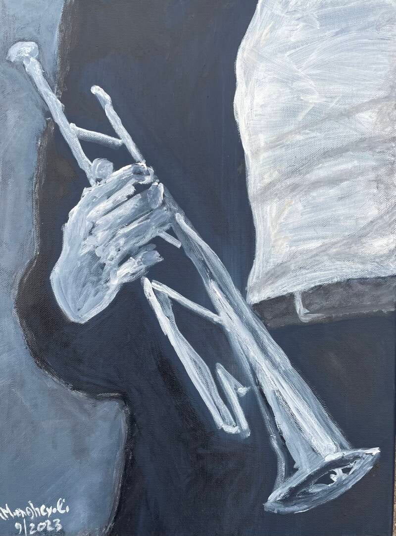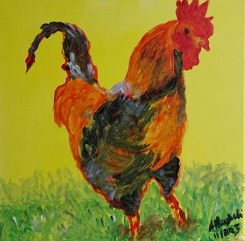 Descrizione: In questa composizione, esploro l’armonia tra gesto, suono e natura attraverso una figura femminile stilizzata, colta nell’atto di suonare il violino. La figura, priva di tratti somatici, diventa simbolo universale dell’atto creativo, mentre il movimento dei capelli, tesi al vento, suggerisce una fusione tra corpo e musica, tra interno ed esterno. Il sole, rappresentato come un disco concentrico dai colori caldi, appare quasi come una controparte visiva del suono: un’emanazione di energia, luce e vibrazione. I colori intensi e netti, insieme alle forme essenziali, guidano l’osservatore verso una lettura emotiva e istintiva dell’opera, al di là della rappresentazione realistica. “La suonatrice di violino” è un invito ad ascoltare ciò che non si vede: l’eco interiore della musica, il silenzio che danza tra le note, la bellezza del gesto che diventa poesia visiva.